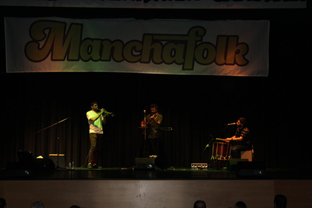 Con instrumentos de presión, guitarra, viento-metal y la voz ofrecían a los asistentes un concierto de música de folclore, de tradición oral de Castilla la Mancha y otras partes de la península.