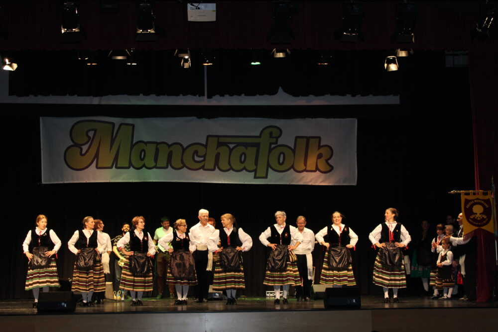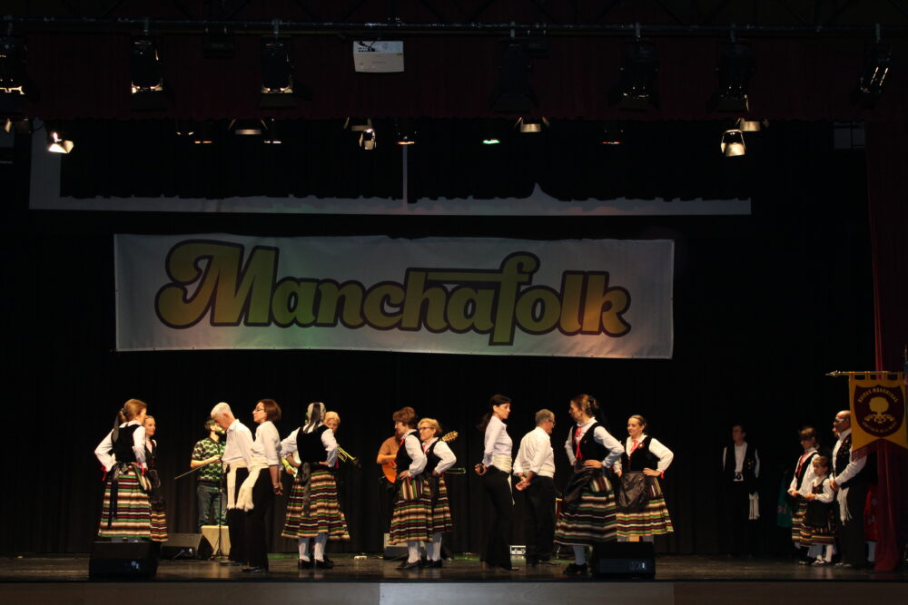 Durante el concierto, el grupo de folclore Raíces Manchegas de Quintanar salió a bailar un fandanguillo y dos jotas.